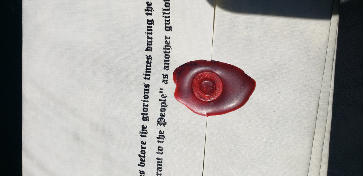Linen paper wrapped CD-R sealed with red wax using an AK-47 round. Each disc is hand painted featuring your choice of either the Death Tape or Original mix of the Hymns of the Personification of Entropy. Ships on or after 9/11/19